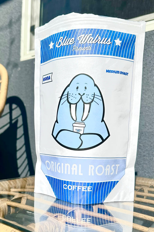 Blue Walrus Original Roast 1 Pound Bag (16oz) - WHOLE BEAN - Kona Coffee