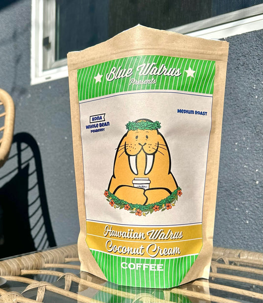 Hawaiian Walrus Coconut Cream 1 Pound Bag (16oz) - WHOLE BEAN - Kona Peaberry Coffee